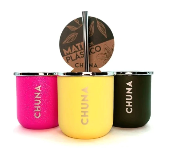 Mate de plástico terminación mate, con doble pared térmica, libre de BPA . Aro superior de polipropileno con proceso de metalizado brillante en material inalterable apto para el contacto con alimentos. Medidas : alto 7,5cm / boca 7,5cm